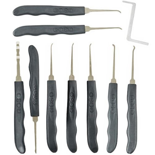 Conjunto de 9 chaves micha, ferramentas ideais para chaveiros, pois permitem a fácil abertura de fechaduras, especialmente residenciais, cadeados, etc. Fabricadas em aço inox, não enferrujam, são muito finas, resistentes e maleáveis. Um produto de alta qualidade que não pode faltar na sua oficina.