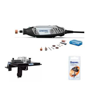 Kit micro Retifica Dremel 3000 220V + Suporte Tupia de Mesa 231 + Fresa 618 para Chanfrar 1/2 Com este Kit Transforme a Micro Retifica em uma Perfeita Tupia de Bancada/Mesa , otima para trabalhos e Artesanatos em Madeira Micro Retifica Dremel 3000 220v: Equipado com ventilador mais eficiente para manter a ferramenta funcionando com frescor sob as duras aplicações e aderência em qualquer posição Possui isolamento de caixa de ar entre o motor e a caixa de transferência de calor, para eliminação direita à mão Desenho de aprimorado para ajuste maios fácil de velocidade Uma zona de aderência de 360 com grip macio e ergonomia superior para conforto e controle Escovas substituíveis para uma vida mais longa Velocidade variável 5.000 - 33.000 rpm: Nenhuma outra ferramenta rotativa é tão rápida Motor universal com rolamento de : Evita o superaquecimento, mesmo sob carga Tensão: 220V Indicado para: Hobbysta Artesão Usuário doméstico Podólogo Protético Mesa de Fresar para Micro Retifica Dremel 231 - 2615023132: A Mesa para fresar 2615023132 da Dremel torna a sua micro retífica numa fresadora de bancada, perfeita para trabalhos em madeira, sulcos e acabamentos de bordas em suas peças; Fixo em uma bancada, esse acoplamento oferece praticidade e conforto, permitindo que você leve o material até a ferramenta e possa movimentá-lo livremente para dar forma sem dificuldades; Possui ajuste de profundidade e uma mesa de trabalho de 203 x 152mm 8 x 6 ; Compatível com: Dremel 3000, 4000 e 8220; Fresa Para Chanfrar com Guia 12,7MM Dremel 618 - 2615000618: Fresa Para Chanfrar 1/2 Dremel 618 - 2615000618 Para fazer contornos, incrustações e encaixes em madeira e outros materiais macios. Feitas de aço para alta velocidade. Itens Inclusos no Kit: 01 - Micro Retifica Dremel 3000 220V; 02 - Discos de corte; 01 - Chave; 02 - Discos de feltro; 01 - Pasta para polimento; 01 - Tubo de lixa com suporte; 01 - Broca 3,2 mm; 02 - Hastes adaptadora; 01 - Mesa de Fresar para Micro Retifica Dremel 231 - 2615023132; 01 - Fresa Para Chanfrar com Guia 12,7MM Dremel 618 - 2615000618. Imagem Meramente Ilustrativa Marca: Não Informado