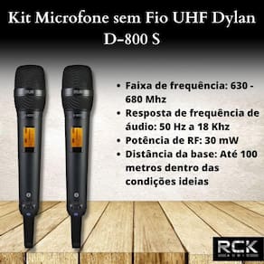 Kit microfone sem fio uhf dylan d-800 s kit microfone sem fio uhf dylan d-8000 s