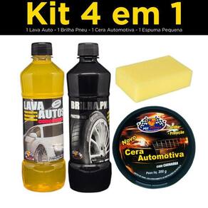 O Kit 4 em 1 Limpeza Lavagem Automotiva Shampoo Pretinho Cera é a solução completa para a limpeza e manutenção do seu carro. Composto por quatro produtos essenciais, este kit da marca Mil Milhas garante que o seu veículo esteja sempre limpo e com aparência de novo.