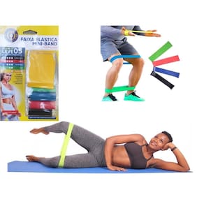Kit Mini Bands Faixas Elásticas Circulares 5 Intensidades Profissional Inclui 5 elásticos com resistências progressivas: - Amarelo Ultra Leve = 3 kg - Verde Leve = até 5 kg - Azul Média = 7 kg - Vermelho Forte = 9 kg - Preto Extra forte = 12 kg Material: Látex Dimensões: 50cm circunferência x 5cm largura As mini bands são elásticos circulares, ótimas para treino funcional, resistência e força muscular. Infinidade de exercícios para o corpo inteiro. As faixas elásticas têm espessura ideal para não enrolar nas pernas. Benefícios: - Realização de alongamentos e fortalecimento muscular - Melhora a coordenação motora - Aprimora habilidades funcionais - Aumenta a mobilidade e flexibilidade Uso em Academia, exercícios, Fisioterapia, Alongamentos na Praia, Yôga, entre outros. Ean: 7899947310968