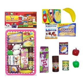 O Kit contém 29 peças: 1 balança 1 caixinha de spaguetti 1 caixinha de leite 1 guaraná 1 lata de milho 1 caixinha de biscoito 1 caixinha de sucrilhos 1 caixinha de bala 1 lata de ervilhas 1 suco de laranja 1 cesto 4 maçãs (3 vermelha e 1 verde) 1 pepino 2 ovos 1 caixinha de suco de uva 1 caixinha de leite integral 1 caixinha de sucrilhos 1 caixinha de cheese crackers 1 caixinha de cookies de chocolate 1 achocolatado 1 milho 2 ovos 1 banana 1 cestinha Ean: 7896464703549