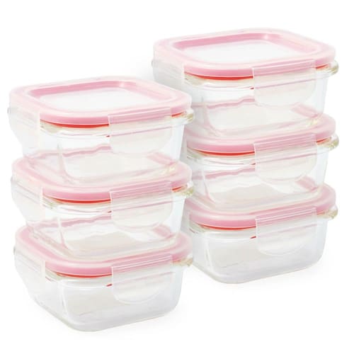 - Kit com 6 potes de borossilicato - Dimensões: 9,5 x 4,8 9,5 cm largura x altura x profundidade - Tamanho pequeno, ideal para pequenas porções. - Pode ser levado ao micro-ondas, máquina de lavar louças, freezer e forno sem a tampa - Suporte temperaturas de até 400 e negativas de até -40 - Desenvolvido com material livre de BPA - Capacidade 170ml - Tampa com trava - Tampa de encaixe que permite que sem empilhados