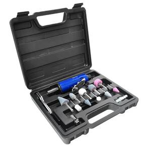 Kit Mini Retífica pneumática, indicada para oficinas, repintura automotiva, metalúrgicas, fábricas de móveis, manutenção industrial e fibra de vidro.