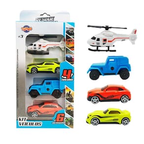 Kit Mini Veículos Carrinhos E Helicóptero 4 Un - Toyng