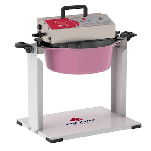 O Misturador de Doces Progás PRMOG-07 Plus oferece um controle de velocidade digital avançado com um temporizador integrado, que pode ser ajustado para contagem crescente ou decrescente, além de possuir pegadores ergonômicos em baquelite, um interruptor geral para segurança e um painel flat de fácil limpeza.