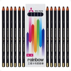 - 12 Lápis Dermatográficos Mitsubishi Rainbow Preto 7610-24.