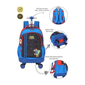 Kit escolar mochila 2em1 costas e 4 rodas 360+lancheira térmica super mario premium mochila com rodas: Possui rodas e alças de costas reguláveis e alça de mão Compartimento para notebook Alças acholchoadas Alça carrinho regulavel Confeccionada em poliéster Fechamento em zíper Puxadores personalizados 2 compartimentos espaçosos 2 bolsos laterais para garrafa Design exclusivo 4 rodinhas resistente Medidas: altura: 50 cm largura: 20 cm comprimento: 30 cm Produzido em poliéster Possui alças transversal Bolso lateral Material interno térmico Ziperes com puxadores personalizados Estampa estilizada Não acompanha potinho e garrafinha Dimensões: largura: 22 cm altura: 20 cm profundidade: 13 cm