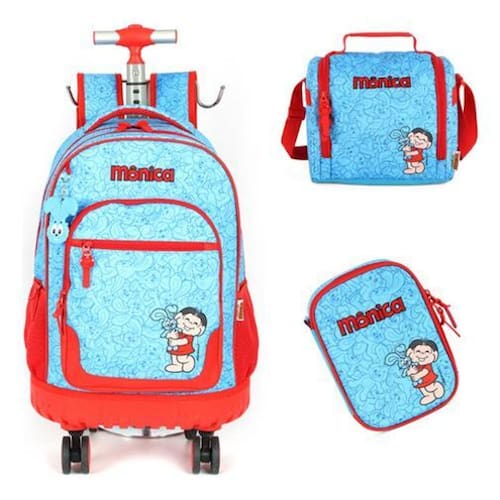 Kit mochilete ou mochila com rodinhas juvenil escolar turma da monica . Mochila toda confeccionada em material de lona poliéster personalizada com parte frontal com desenho do personagem, um material aonde facilita a limpeza e protege os materiais. Possui compartimentos externos frontal, aonde permite separar os matérias com mais organização. Bolsos laterais para garrafa. Possui alça nas costas reguláveis. Possui um sistema de rodinhas de silicone preparado para os obstáculos. Puxador em metal resistente com regulagem de altura. Acompanha lancheira térmica com forro cor cinza, alças reguláveis, alça carona podendo encaixar sobre o puxador da mochila. Porta lápis personalizado box com repartições para encaixar os lápis. Ideal para crianças maiores que não gosta de personagens podendo ser regulável em varias alturas. Especificações e características - material lona poliéster - kit mochila com lancheira e estojo - fechamento zíper grosso e reforçado - puxador em metal - rodinhas de silicone - repartição externa com zíper - bolso externo para garrafa - puxador regulável - alça de costas reguláveis - peso kit 2.420 kg - do fabricante contra defeitos de fabricação : 30 dias - marca: luxcel Medidas / dimensões - mochila - aproximadas - altura 45 cm - largura 33 cm - profundidade 22 cm - peso 1.620 kg Medidas / dimensões - lancheira - aproximadas - altura 19,0 cm - largura 21,0 cm - profundidade 15,0 cm - peso 0.190 gramas Medidas / dimensões - porta lápis - aproximadas - altura 21,0 cm - largura 15,0 cm - profundidade 6,0 cm - peso 0.250 gramas Marca: Não Informado