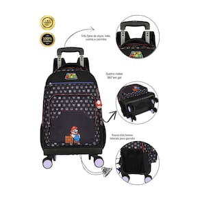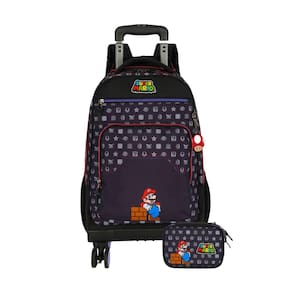Kit Mochila 4 Rodas 360º+Estojo Box Super Mario - Preto