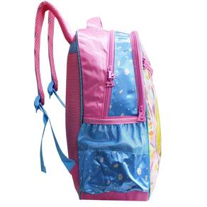 Descrição da mochila: - alças acolchoadas e ajustáveis. - alça de mão. - dois bolsos laterais. - zíper duplo personalizado. - compartimento principal com amplo espaço interno para livros, cadernos e materiais escolares. - bolso frontal para organização.