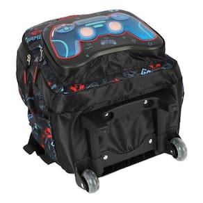 Esse lindo kit escolar controle de vídeo game vai fazer sucesso entre a garotada. Esse modelo conta com 3 compartimentos e dois bolsos laterais para colocar a garrafa. Possui 2 rodinhas de silicone e 2 apoiadores frontais para mantê-la em pé.