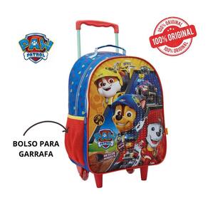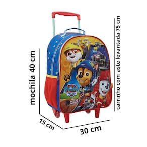 Kit Mochila Com Carrinho e Rodas com Lancheira e Estojo Patrulha Canina