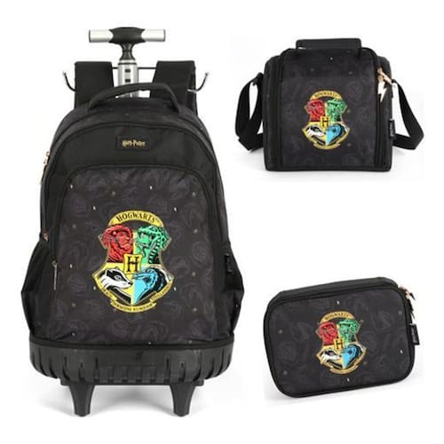 - Amplo compartimento principal para melhor organização dos cadernos, livros e apostilas; - Dispõe de alça de mão e alça retrátil reforçada para uma melhor locomoção; - Alças acolchoadas e reguláveis caso queira transportar no ombro; - Rodinhas de silicone; - Base emborrachada - Puxadores dos zíperes em borracha; - Logo Harry Potter; - Possui puxador em formato T com 2 regulagens de altura. - Material: 100% Poliéster e forro 100% poliéster.