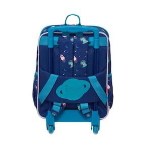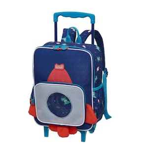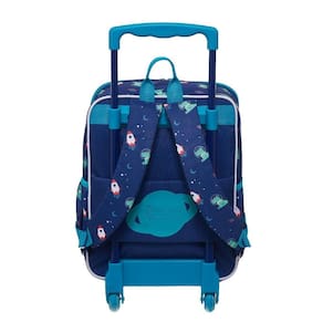 Mochila de rodinhas Kouii Pacific escolar infantil, com puxador personalizado, chifrinho de poliéster, possui dois bolsos para garrafas, logo emborrachado. Além de contar com lancheira com alça ajustável e etiquetas personalizadas.