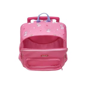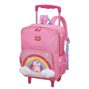 Mochila de rodinhas Kouii Pacific escolar infantil, com puxador personalizado, chifrinho de poliéster, possui dois bolsos para garrafas, logo emborrachado. Além de contar com lancheira com alça ajustável e etiquetas personalizadas.