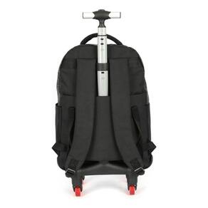 O carrinho é feito em alumínio e as quatro rodinhas possuem giro 360, proporcionado leveza e facilidade ao transporte. O puxador é em forma de T, com botão para regular a altura. Ela também pode ser usada nas costas pois possui alças ajustáveis e macias que se adaptam ao corpo. Vem com alça de mão fixa. Além de Contar com a novidade desse ano, o borrachão na parte da base que proporciona mais durabilidade e proteção do produto.