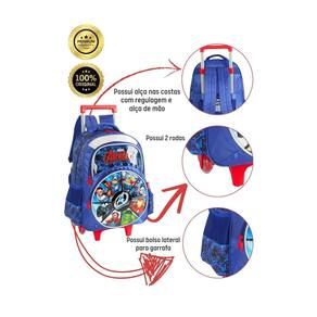Kit escolar mochila com rodas+lancheira térmica avengers mochila rodas: Possui rodas e alças de costas Confeccionada em poliéster Possui 3 compartimentos espaçosos Fechamento em zíper Dois bolsos laterais telados Etiqueta de identificação na parte traseira Puxadores personalizados