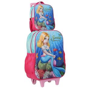 Kit Mochila Com Rodinhas E Lancheira + Estojo Sereia