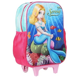 Kit Mochila Com Rodinhas E Lancheira + Estojo Sereia