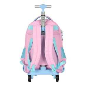- amplo compartimento principal para melhor organização dos cadernos, livros e apostilas; - 1 compartimentos frontais com fechamento em zíper, para pequenos objetos; - dispõe de alça de mão e alça retrátil reforçada para uma melhor locomoção; - alças acolchoadas e reguláveis caso queira transportar no ombro; - rodinhas de silicone; - puxadores dos zíperes em borracha personalizados; - logo stitch; - material: 100% poliéster e forro 100% poliéster. Acompanha penduricalho exclusivo stitch.