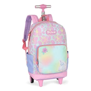 - amplo compartimento principal para melhor organização dos cadernos, livros e apostilas; - 1 compartimentos frontais com fechamento em zíper, para pequenos objetos; - dispõe de alça de mão e alça retrátil reforçada para uma melhor locomoção; - alças acolchoadas e reguláveis caso queira transportar no ombro; - rodinhas de silicone; - puxadores dos zíperes em borracha personalizados; - logo stitch atoalhado; - aplique do stitch com acabamento bordado - material: 100% poliéster e forro 100% poliéster. Acompanha penduricalho exclusivo stitch.