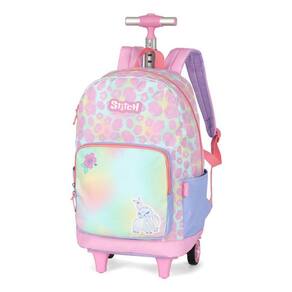 - amplo compartimento principal para melhor organização dos cadernos, livros e apostilas; - 1 compartimentos frontais com fechamento em zíper, para pequenos objetos; - dispõe de alça de mão e alça retrátil reforçada para uma melhor locomoção; - alças acolchoadas e reguláveis caso queira transportar no ombro; - rodinhas de silicone; - puxadores dos zíperes em borracha personalizados; - logo stitch atoalhado; - aplique do stitch com acabamento bordado - material: 100% poliéster e forro 100% poliéster. Acompanha penduricalho exclusivo stitch.