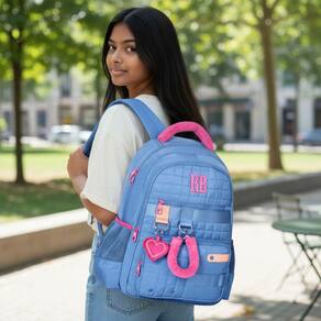 Fabricada em poliéster resistente, a mochila possui cinco bolsos que facilitam a organizacao de materiais escolares e pessoais. Seu tamanho compacto, com altura de 45 cm, largura de 16 cm e profundidade de 30 cm, a torna ideal para transportar tudo o que voce precisa sem comprometer o conforto.