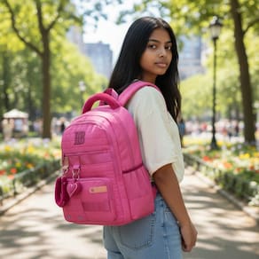 Fabricada em poliéster resistente, a mochila possui cinco bolsos que facilitam a organizacao de materiais escolares e pessoais. Seu tamanho compacto, com altura de 45 cm, largura de 16 cm e profundidade de 30 cm, a torna ideal para transportar tudo o que voce precisa sem comprometer o conforto.