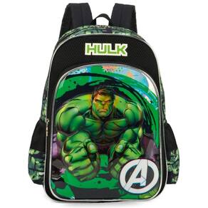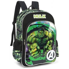 - características mochila: - painel pvc. - material em poliéster. - bolsos para garrafinha telado. - acompanha a luva de tecido do hulk. - bolso frontal espaçoso. - painel holográfico. - identificador nas costas. - alça de mão. - alça de costas acolchoadas. - ziperes personalizados. - com 2 bolsos principal e frontal