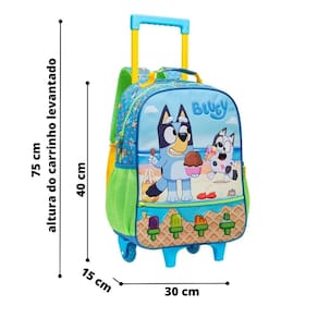 Kit mochila de carrinho escolar com rodinhas lancheira e estojo bluey