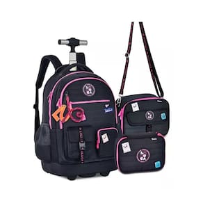 Kit Mochila de Carrinho Lancheira e Estojo Box Preto Luluca Sucesso no YouTube e no Volta às Aulas Clio, Luluca a apresenta a nova coleção repaginada para deixar as 12 milhões de pandilhas fãs encantadas. Na Clio, ela estreia com uma coleção super descolada e alto astral. Se divirta junto com a gente e não se esqueça de deixar o seu Lulike CARACTERÍSTICAS DA MOCHILA: A mochila de rodinha oficial da Luluca é confeccionada em poliéster Soft com silk, matelassê e detalhes em material telado no painel frontal, Tem proteção para rodas e alças, possui compartimento para laptop. Confeccionada em nylon, Material de alta qualidade, resistência e durabilidade;
