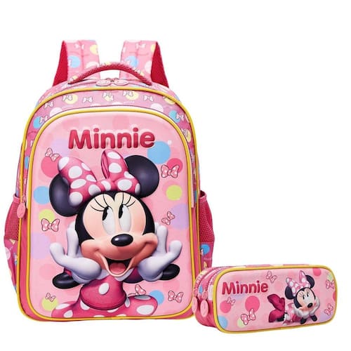 Mochila Escolar Minnie 3D A magia da Minnie agora nas suas costas A mochila escolar Minnie 3D é a escolha perfeita para as pequenas fãs da personagem mais querida da Disney. Com um design tridimensional super divertido e funcionalidades incríveis, ela transforma a hora de ir para a escola em uma aventura mágica. Principais características: Design 3D exclusivo: A Minnie em relevo, com um efeito visual incrível e super realista. Material resistente: Garante durabilidade e resistência no dia a dia escolar. Fechamento por zíper: Facilita o acesso ao compartimento principal. Alças de costas acolchoadas com regulagem: Adapta-se ao tamanho de cada criança, proporcionando conforto e ergonomia. Alça de mão: Permite carregar a mochila de diferentes formas. Bolso lateral para garrafa: Ideal para transportar bebidas com praticidade. Cursor personalizado: Um toque especial que as meninas vão adorar. Por que escolher essa mochila Estilo e funcionalidade: Combina o design encantador da Minnie com a praticidade de uma mochila escolar. Conforto: As alças acolchoadas e reguláveis garantem o conforto durante o transporte. Organização: Bolso lateral para garrafa facilita a organização dos materiais. Perfeito para presente: Ideal para presentear as pequenas fãs da Minnie em qualquer ocasião. Ideal para: Meninas fãs da Minnie: Um presente perfeito para encantar as pequenas fãs. Dia a dia escolar: Acompanha as meninas em todas as aventuras escolares. Viagens e passeios: Ideal para levar os pertences com segurança e estilo. Medidas: