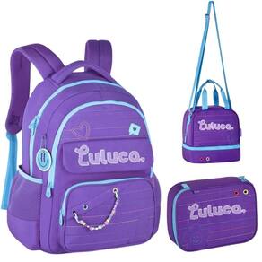 Kit mochila de costas em nylon oficial luluca lu24610 roxo Kit mochila de costas em nylon oficial luluca lu24610 roxo Com mais de 30 milhões de pandinhas em suas redes sociais e sucesso de vendas no volta às aulas, luluca continua com a clio style e traz uma coleção super estilosa e ligada às tendências de moda. O kit de mochila de costas oficial da luluca é confeccionada em crinkle com matelassê colorido e localizado de flor e coração, ilhoses coloridos, patches atoalhados, etiquetas de borracha e cadarços acetinados. Compartimentos internos para laptop + tablet para você se organizar ainda mais Tem alça de mão reforçada e de costas acolchoadas e reguláveis. O forro da mochila é todo rosa pink, dando um charme extra Acompanha um lindo chaveiro Essa linda mochila pode ser Utilizado para escola ou para pequenas viagens e passeios. A lancheira do tipo mini mochila, também pode ser Utilizado como frasqueira Mochila - confeccionada em crinkle, matelassê e detalhes exclusivos. - os puxadores dos zíperes são personalizados. - possui compartimento para notebook, divisões com bolsos e fechamentos em zíper independentes, bolsos frontais e bolsos laterais telados. - alças e costas acolchoadas para maior conforto. - possui alça de mão reforçada e alças de costas reguláveis. - pandinha bordado no costado. - possui alça carona e bolso antifurto na parte traseira. - tamanho aproximado: 44,5cm altura x 33cm largura x 13cm profundidade Lancheira térmica - confeccionadas em crinkle com matelassê colorido e localizado de flor e coração, ilhoses coloridos, patches atoalhados, Etiquetas de borracha e cadarços acetinados. - lancheiras com espaço duplo independente. - possui forro térmico, alça de mão, alças longas reguláveis para usar a tiracolo e amplo espaço para levar seus lanches. - possui alça carona para prender na mochila de rodinhas. - material resistente - acompanha puxadores personalizados - possui um bolso amplo principal e um bolso frontal, ambos térmicos e com fechamento por zíper. - tamanho aproximado: 25cm altura x 21cm largura x 13cm profundidade Estojo box - confeccionado em poliéster soft, matelassê, possui detalhes em bordado, atoalhado e puxadores personalizados. - possui compartimento interno com zíper separado para miudezas, elásticos para prender 36 lápis e amplo espaço para outros lápis e material diverso. - esse estojo tem um espaço enorme para caber todo o material muito organizado - tamanho aproximado: 22 x 16 x 6 cm Informação adicional Marca: clio Cód.: lu24610ktrx Cor: roxo Conteúdo do kit: 01 mochila de costas, 01 lancheira térmica e 01 estojo box de 90 dias do fornecedor. Produto oficial licenciado Atenção: as tonalidades das cores do produto podem sofrer variações de percepção, de acordo com a tela do celular ou monitor, e podem variar de acordo com o lote de fabricação.