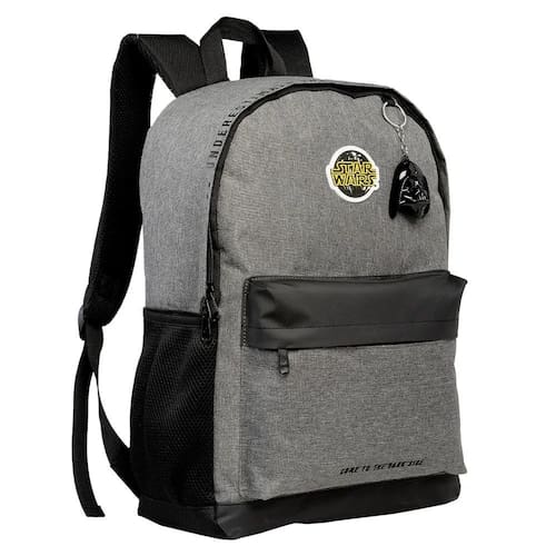 1. Mochila Star Wars – Design Imponente com a Força nos Detalhes! -Material em políester mescla e emborrachado; -Logo emborrachado; -Acompanha chaveiro; -Detalhe frase em bordado; -Detalhe lateral em estampa com relevo; -Puxadores em metal; -Zíper tratorado; -Alças acolchoadas com etiqueta; -Bordado nas costas; -Forro interno com estampa personalizada.