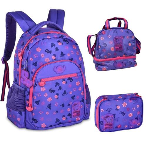 Kit Mochila De Costas Juvenil Stitch Disney Clio Roxo
