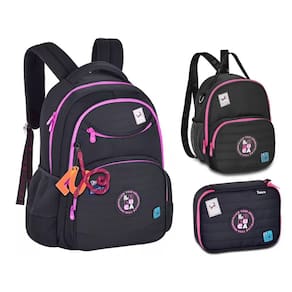 A Mochila de Rodinha Oficial da Luluca é confeccionada em nylon com acabamento em matelassê com patches de borracha, metal e tecido, garantindo durabilidade e elegância. Cadarços logados acetinados, pins de metal e etiqueta de borracha, reforçando o design exclusivo, possui bolsos frontais para pequenos objetos, bolso médio para materiais escolares e cadernos, bolso principal grande com compartimento para laptop e amplo espaço para os demais itens, e bolsos laterais telados com elásticos para colocar garrafinha, tem proteção para rodas e alças, zíper bicolor e um chaveiro de corda com acrílico que é puro charme!