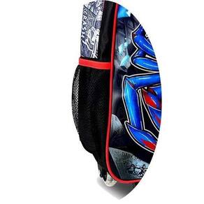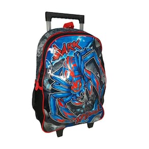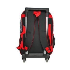 - de cor preto com características vermelho. - possui uma incrível estampa dark spider, com cores chamativas. - com 01 bolso bem espaçoso. - com 02 bolsos laterais para garrafinha em tecido telado com acabamento elástico. - possui haste/puxador superior que sobe e desce. - com alças para costas acolchoada com regulagem. - com alça de mão. - puxador abridor de zíper, todos personalizados. - possui 02 rodinhas de silicone com apoio frontal para mantê-la de pé.