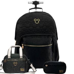 Kit mochila de rodas mickey lancheira térmica estojo box - xeryus