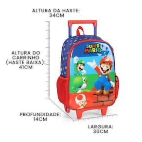 Kit mochila de rodas super mario com lancheira estojo duplo - luxcel Apresentamos o incrível kit mochila de rodas super mario, que vem completo com lancheira e estojo duplo, perfeito para as aventuras escolares do seu filho com um design divertido que traz a icônica presença do super mario, este kit não é apenas estiloso, mas também super funcional. A mochila de rodas facilita o transporte, aliviando o peso nas costas e tornando o deslocamento muito mais prático. Características mochila: Alça de mão Alça de costas Bolsos laterais Identificador personalizado Puxadores em zíper Características lancheira: Alças de costas Alça carona Alça de mão Compartimento térmico Painel frontal estampado Puxadores em zíper Características estojo: Compartimento amplo duplo Design jovial Painel frontal estampado em pvc Puxadores em zíper Especificações mochila: Marca: super mario Medidas aproximadas mochila a x l x p : 41cm x 30cm x 14cm Peso: 815g aprox Capacidade: 17l Composição do produto: poliéster Especificações lancheira: Marca: super mario Medidas aproximadas lancheira a x l x p : 22cm x 17cm x 8cm Peso: 182g aprox Compartimento: térmico Composição do produto: poliéster Forro interno: pvc Especificações estojo: Marca: super mario Medidas aproximadas estojo a x l x p : 22cm x 10cm x 7cm Peso: 90g aprox Composição do produto: poliéster Conteúdo da embalagem: Ic41382mo - 1 mochila costas super mario La41383mo - 1 lancheira térmica super mario Ei41384mo - 1 estojo duplo super mario As cores podem variar entre as imagens mostradas acima e o produto. Imagens meramente ilustrativas. Todas as informações divulgadas são de responsabilidade exclusiva do fabricante. de 90 dias contra defeito de fabricação.