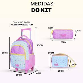 Kit Escolar Perfeito Mochila de Rodinha Bolinhas, Lancheira e Estojo para um Volta às Aulas Cheio de Alegria e Estilo