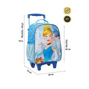Design da Cinderela com brilho: Todos os itens possuem um design exclusivo com a personagem favorita das crianças e detalhes brilhantes que encantam. Mochila de rodinha: Facilita o transporte dos materiais escolares e proporciona mais conforto para a criança. Lancheira: Ideal para guardar lanches e bebidas. Estojo simples: Espaço suficiente para organizar lápis, canetas e outros materiais. Zíper resistente: Garante maior durabilidade e segurança em todos os itens. Bolsos laterais: Ideais para guardar garrafinhas ou outros objetos pequenos. Alça de mão e de costas: Versatilidade para carregar a lancheira da forma mais confortável. Detalhes personalizados: Tornam o kit ainda mais especial e único. Alças acolchoadas e reguláveis: Adaptam-se perfeitamente às costas da criança.
