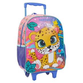 Kit Mochila de Rodinha Lancheira Estojo Xeryus Onça Colorido - Único-Rosa
