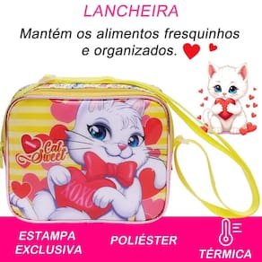 Prepare-se para encantar com o kit de mochila de rodinhas feminina Com uma charmosa estampa de listras, corações e uma adorável gatinha branca, o tema Cat Sweet é perfeito para meninas que amam estilo e fofura. Características da Mochila com Rodas: Design Encantador: Estampa única com listras coloridas, corações e uma linda gatinha branca, trazendo alegria e delicadeza ao visual. Mobilidade e Praticidade: Rodas de silicone resistentes, proporcionando deslocamento suave e silencioso. Alça de mão para maior versatilidade. Espaço e Organização: Compartimento principal amplo com zíper, ideal para acomodar livros, cadernos e materiais escolares. Dois bolsos laterais perfeitos para garrafas ou itens de acesso rápido. Dimensões: 41 cm de altura x 30 cm de largura x 17 cm de profundidade. Características da Lancheira: Isolamento Térmico: Mantém os alimentos frescos e prontos para o consumo. Divisão Única: Espaçosa para organizar lanches e snacks com praticidade. Características do Estojo: Compacto e Funcional: Divisão única para organizar lápis, canetas e acessórios escolares. Dimensões: 23,5 cm de comprimento x 7 cm de altura. Por que escolher este kit Estilo Fofinho e Moderno: A combinação das listras, corações e a delicada gatinha fazem deste kit uma escolha adorável e cheia de personalidade. Funcionalidade e Conforto: Projetado com materiais de alta qualidade, espaço eficiente e recursos que tornam o dia a dia mais prático. Durabilidade e Beleza: Rodas de silicone e materiais resistentes garantem um produto durável e charmoso. Deixe a rotina escolar cheia de doçura e organização Com o tema Cat Sweet, este kit é perfeito para meninas que desejam brilhar em cada detalhe. Marca: Não Informado Ean: 9462903209996