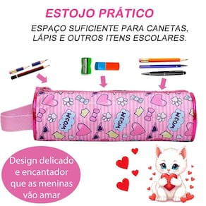 Prepare-se para encantar com o kit de mochila de rodinhas feminina Com uma charmosa estampa de listras, corações e uma adorável gatinha branca, o tema Cat Sweet é perfeito para meninas que amam estilo e fofura. Características da Mochila com Rodas: Design Encantador: Estampa única com listras coloridas, corações e uma linda gatinha branca, trazendo alegria e delicadeza ao visual. Mobilidade e Praticidade: Rodas de silicone resistentes, proporcionando deslocamento suave e silencioso. Alça de mão para maior versatilidade. Espaço e Organização: Compartimento principal amplo com zíper, ideal para acomodar livros, cadernos e materiais escolares. Dois bolsos laterais perfeitos para garrafas ou itens de acesso rápido. Dimensões: 41 cm de altura x 30 cm de largura x 17 cm de profundidade. Características da Lancheira: Isolamento Térmico: Mantém os alimentos frescos e prontos para o consumo. Divisão Única: Espaçosa para organizar lanches e snacks com praticidade. Características do Estojo: Compacto e Funcional: Divisão única para organizar lápis, canetas e acessórios escolares. Dimensões: 23,5 cm de comprimento x 7 cm de altura. Por que escolher este kit Estilo Fofinho e Moderno: A combinação das listras, corações e a delicada gatinha fazem deste kit uma escolha adorável e cheia de personalidade. Funcionalidade e Conforto: Projetado com materiais de alta qualidade, espaço eficiente e recursos que tornam o dia a dia mais prático. Durabilidade e Beleza: Rodas de silicone e materiais resistentes garantem um produto durável e charmoso. Deixe a rotina escolar cheia de doçura e organização Com o tema Cat Sweet, este kit é perfeito para meninas que desejam brilhar em cada detalhe. Marca: Não Informado Ean: 9442903209998