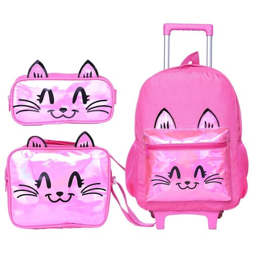 Este kit de mochila de rodinhas feminina é a combinação perfeita de encanto, praticidade e estilo Com um design encantador em rosa com glitter sutil, estampa fofa de gatinho e detalhes holográficos no bolso externo, ele é ideal para meninas que amam brilhar e se destacar. Características da Mochila: Design Encantador: Rosa com glitter suave e estampa de um adorável gatinho que conquista corações. O bolso externo com detalhes holográficos dá um toque moderno e mágico. Praticidade e Conforto: Rodinhas resistentes para facilitar o transporte. Alça de mão funcional para maior versatilidade. Dois bolsos laterais perfeitos para garrafas ou itens de fácil acesso. Organização Essencial: Compartimento principal amplo para guardar materiais escolares. Bolso externo com zíper para itens menores. Dimensões: 41 cm de altura x 30 cm de largura x 17 cm de profundidade. Características da Lancheira: Isolamento Térmico: Mantém os lanches frescos e prontos para o consumo. Praticidade em Tamanho Compacto: Uma divisão espaçosa para alimentos e bebidas. Dimensões: 22 cm de comprimento x 6,5 cm de altura. Características do Estojo: Compacto e Prático: Divisão única perfeita para armazenar lápis, canetas e pequenos acessórios escolares. Dimensões: 23,5 cm de comprimento x 7 cm de altura. Por que escolher este kit Estilo Encantador: O glitter, o gatinho e os detalhes holográficos tornam este kit um acessório único e adorável para qualquer ocasião. Funcionalidade e Conforto: Com espaço suficiente e design prático, ele é perfeito para manter tudo organizado. Durabilidade Garantida: Feito com materiais de alta qualidade, é ideal para acompanhar as crianças em sua rotina diária. Leve brilho e fofura para o dia a dia escolar Este kit é perfeito para meninas que desejam unir estilo, praticidade e um toque mágico em cada detalhe. Marca: Não Informado Ean: 9402903209992