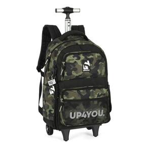Conte com a facilidade das rodinhas , é muito mais fácil para sua filha o transportar a mochila, sem contar que já vem acompanhado com Lancheira e Estojo. Pode ter certeza que ela irá arrasar com este lindo Kit de Militar da Up4you Descrição da Mochila com rodinhas - Amplo compartimento principal para melhor organização dos cadernos, livros e apostilas; - 1 Compartimentos frontais com fechamento em zíper, para pequenos objetos; - Dispõe de alça de mão e alça retrátil reforçada para uma melhor locomoção; - Alças acolchoadas e reguláveis caso queira transportar no ombro; - Puxadores dos zíperes em borracha; - Possui puxador em formato T com 2 regulagens de altura. - Material: 100% Poliéster e forro 100% poliéster. - Chaveiro Personalizado - Detalhe telado no bolso frontal Tamanho/peso da Mochila: - Altura: 46 cm - Largura: 32 cm - Profundidade: 15 cm - Peso: 1,650 kg Lancheira Térmica; As lancheiras são leves, fáceis de limpar e transportar, combinam com qualquer criança e ainda cabem tudo que precisam para a hora do lanche. - Alça de mão e alças para carregar no ombro; - Fechamento em zíper - Altura: 23 cm - Largura: 20 cm - Profundidade: 15 cm - Peso: 200 gramas Obs.: Não acompanha potinho e garrafinha. Estojo; Lindo estojo com divisórias interna para melhor organização do seu material, ideal para o dia a dia na escola. - Altura: 6 cm - Largura: 22 cm - Profundidade: 15 cm de 6 meses contra defeitos de fabricação. Dicas e Cuidados; Proteja os objetos pontiagudos ou cortantes evitando o contato direto com o produto. Guarde o produto e um local seco, fresco e arejado, para evitar a proliferação de fungos que podem danificar o produto. Para Limpeza, use apenas água morna e sabão neutro nas partes metálicas somente uma flanela seca. Nunca aplique produtos abrasivos, solventes ou quaisquer agentes químicos. Para secagem, Utilize apenas pano seco. Não exponha ao sol e altas temperaturas por um período de tempo prolongado. Apare sempre os fios soltos do tecido, para que eles não se prendam no zíper. Duvida Faça-nos uma pergunta : Marca: Não Informado