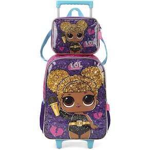 KIT MOCHILA DE RODINHAS E LANCHEIRA LUXCEL LOL SURPRISE
