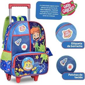 KIT MOCHILA DE RODINHAS COM ESTOJO E LANCHEIRA GATO GALÁCTICO 16 GG24116K