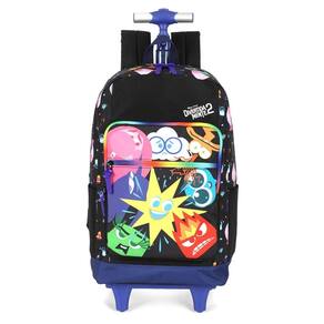 Mochila escolar com rodinhas: Divertidamente 2 Material: Poliéster de alta durabilidade Dimensões: 55 x 33 x 20 cm Fechamento: Zíper resistente Rodinhas: 2 rodinhas para facilitar o transporte Alças: Ajustáveis e acolchoadas Design: Estampa temática do filme "Divertidamente"